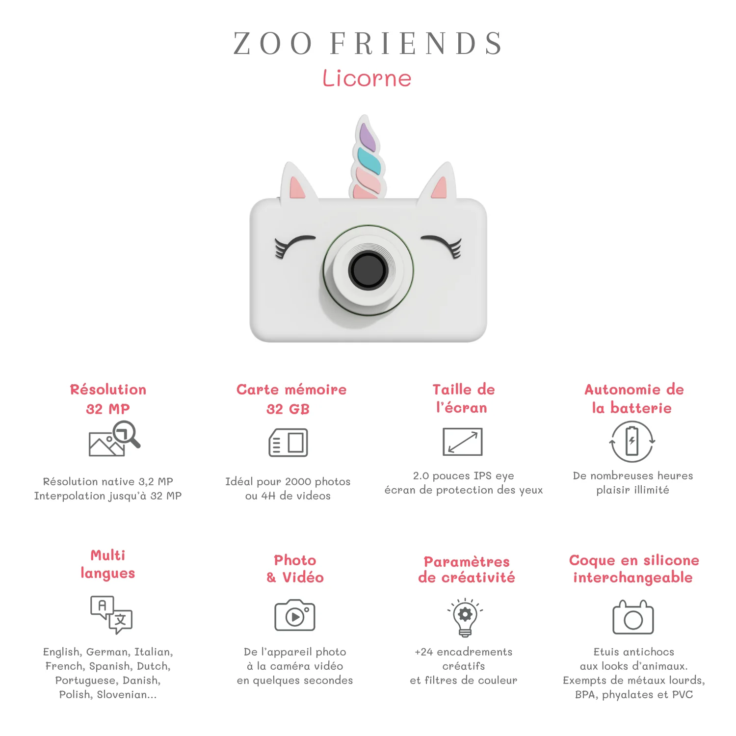 Offrez à votre enfant l’appareil photo licorne The Zoo Family et transformez chaque instant en souvenir inoubliable !