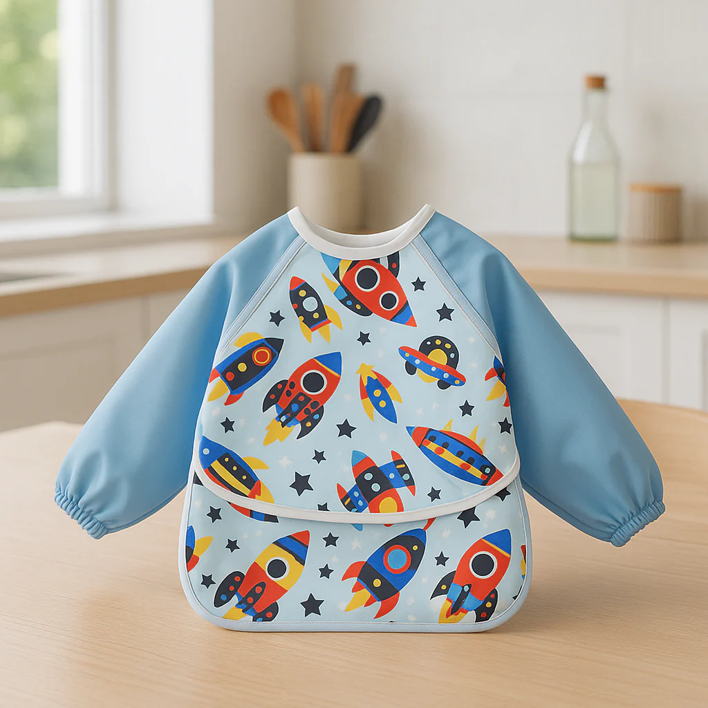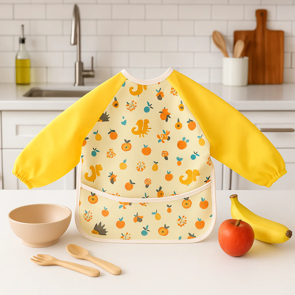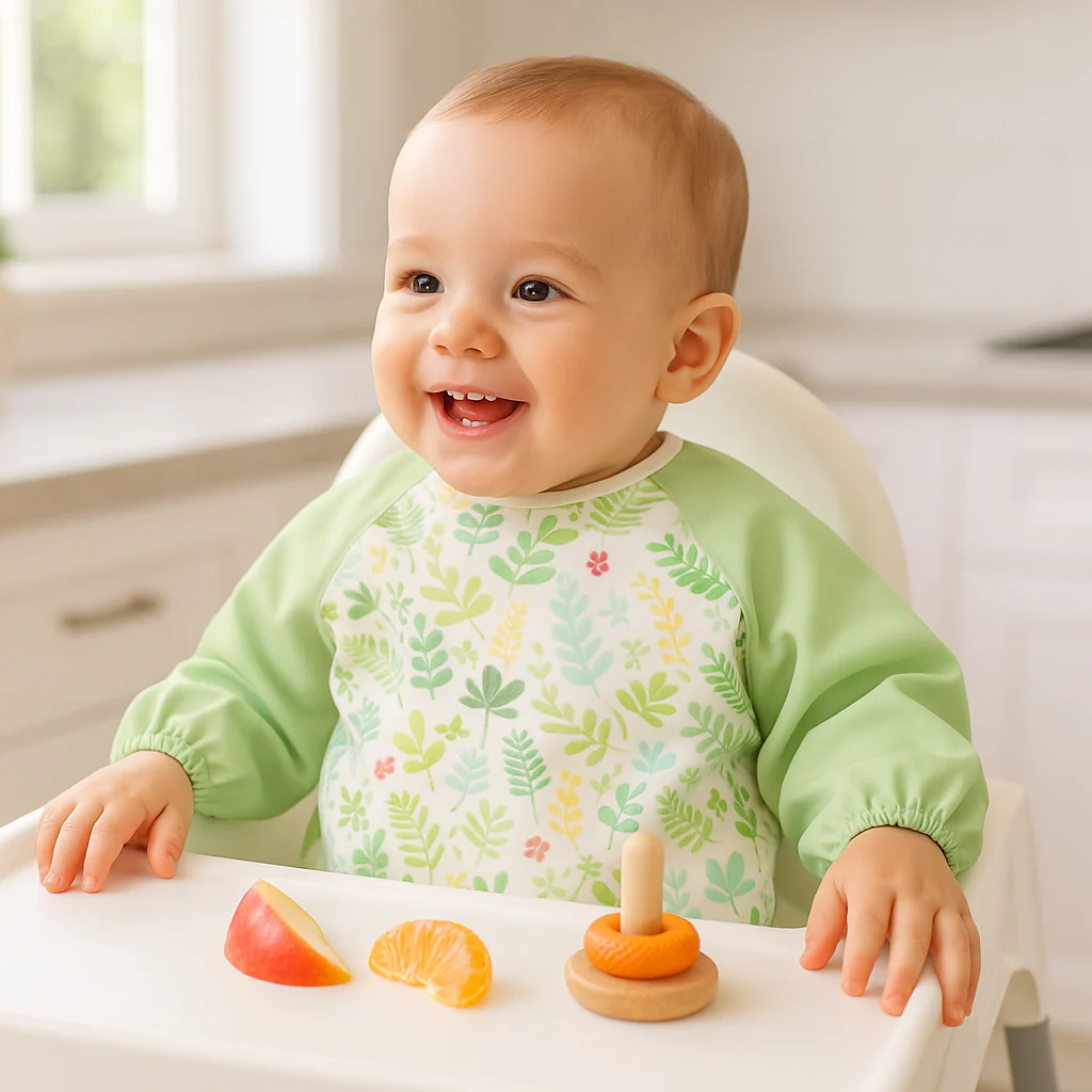 Bavoir manche longue imperméable pour bébé : protection anti-taches complète dès les premiers repas !