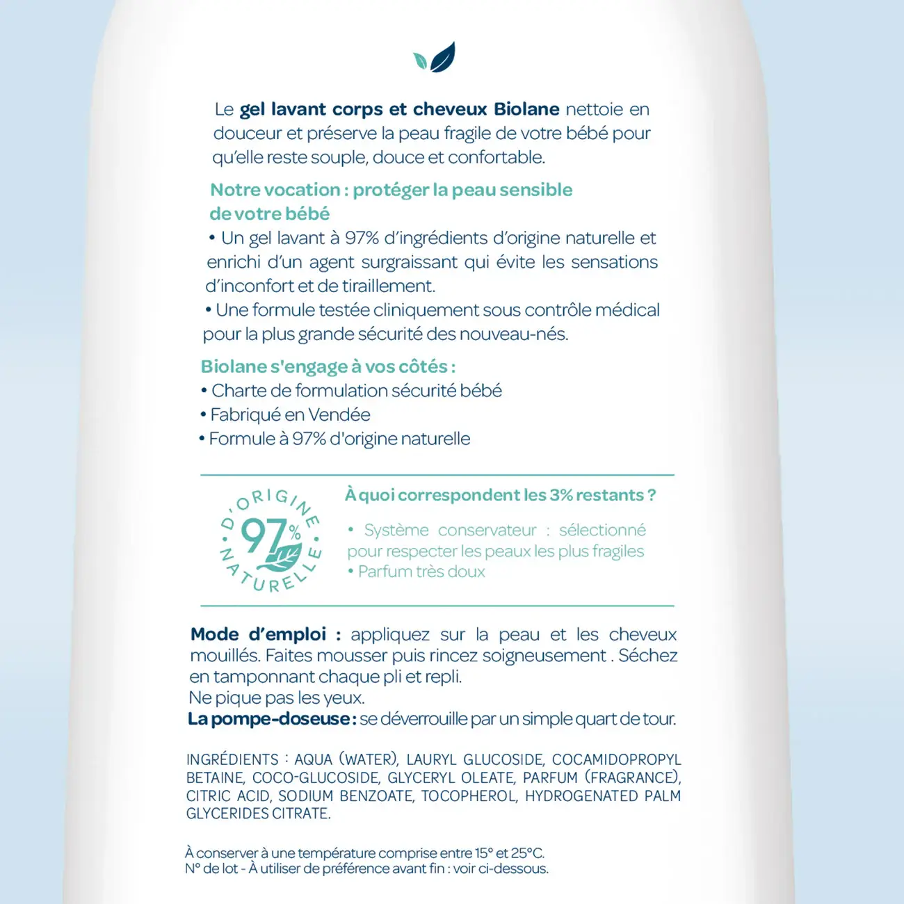 • Ingrédients : 97 % d’origine naturelle