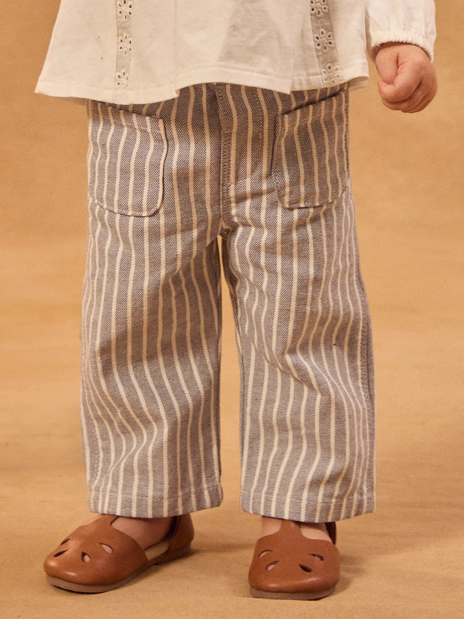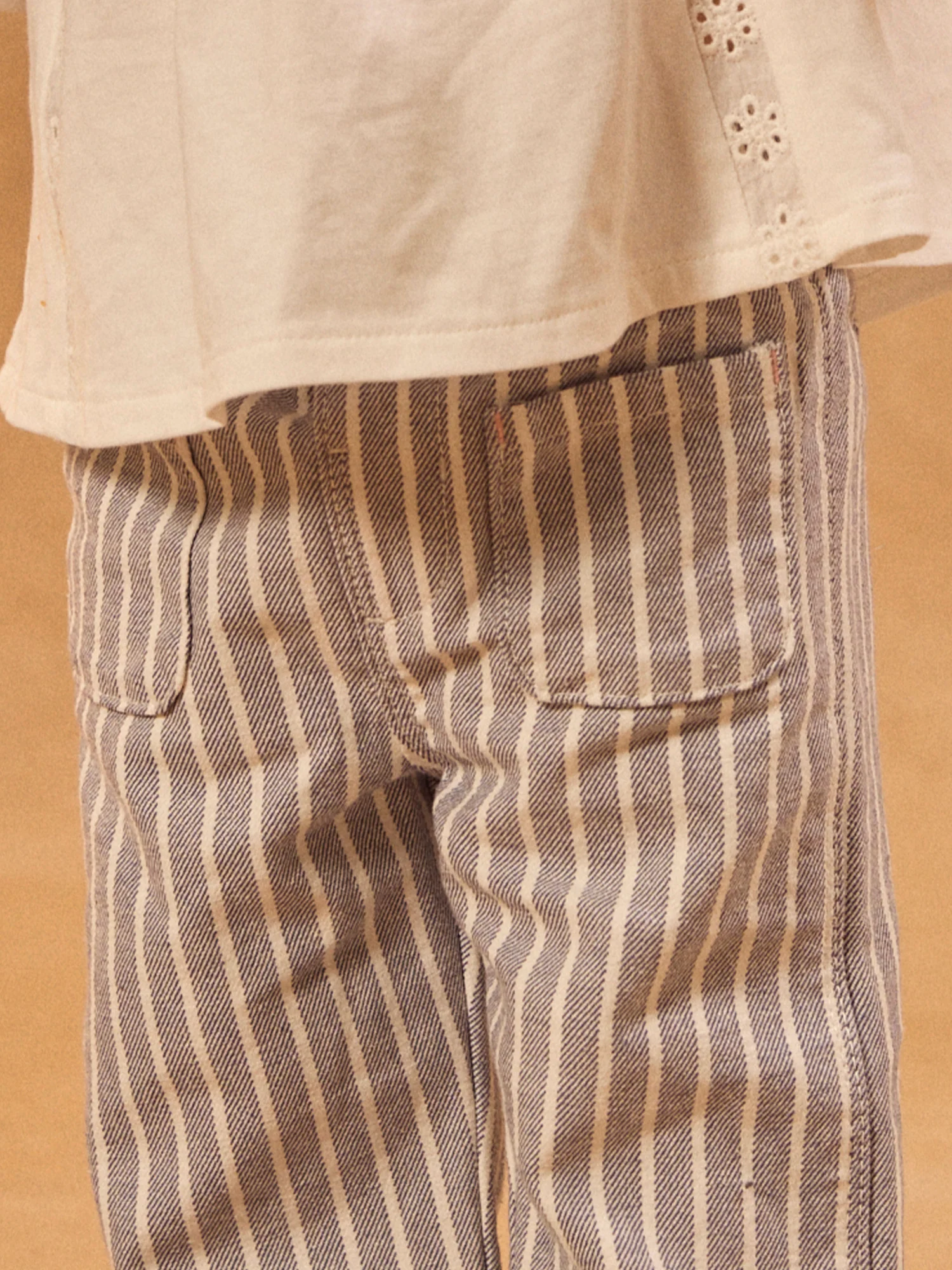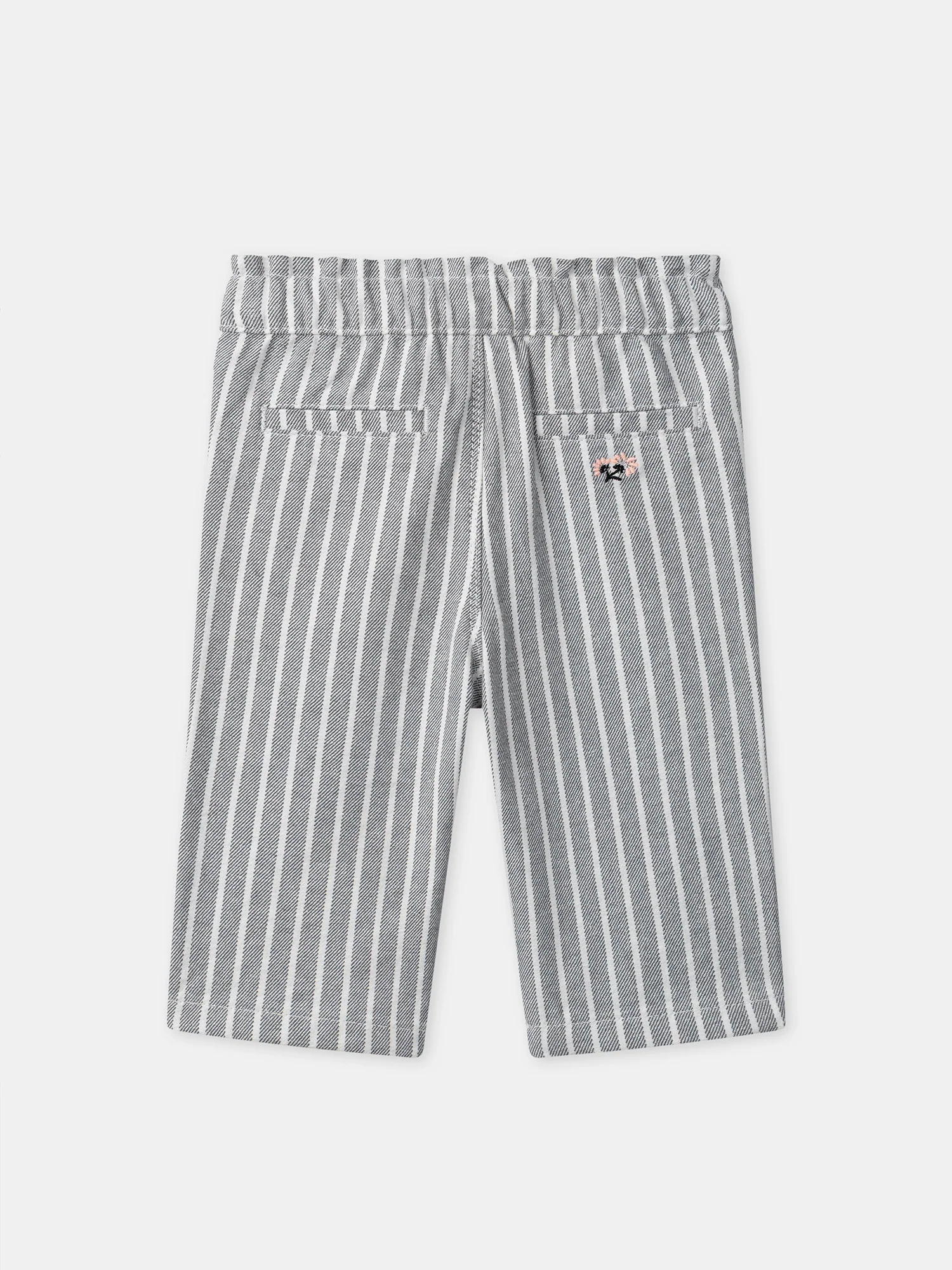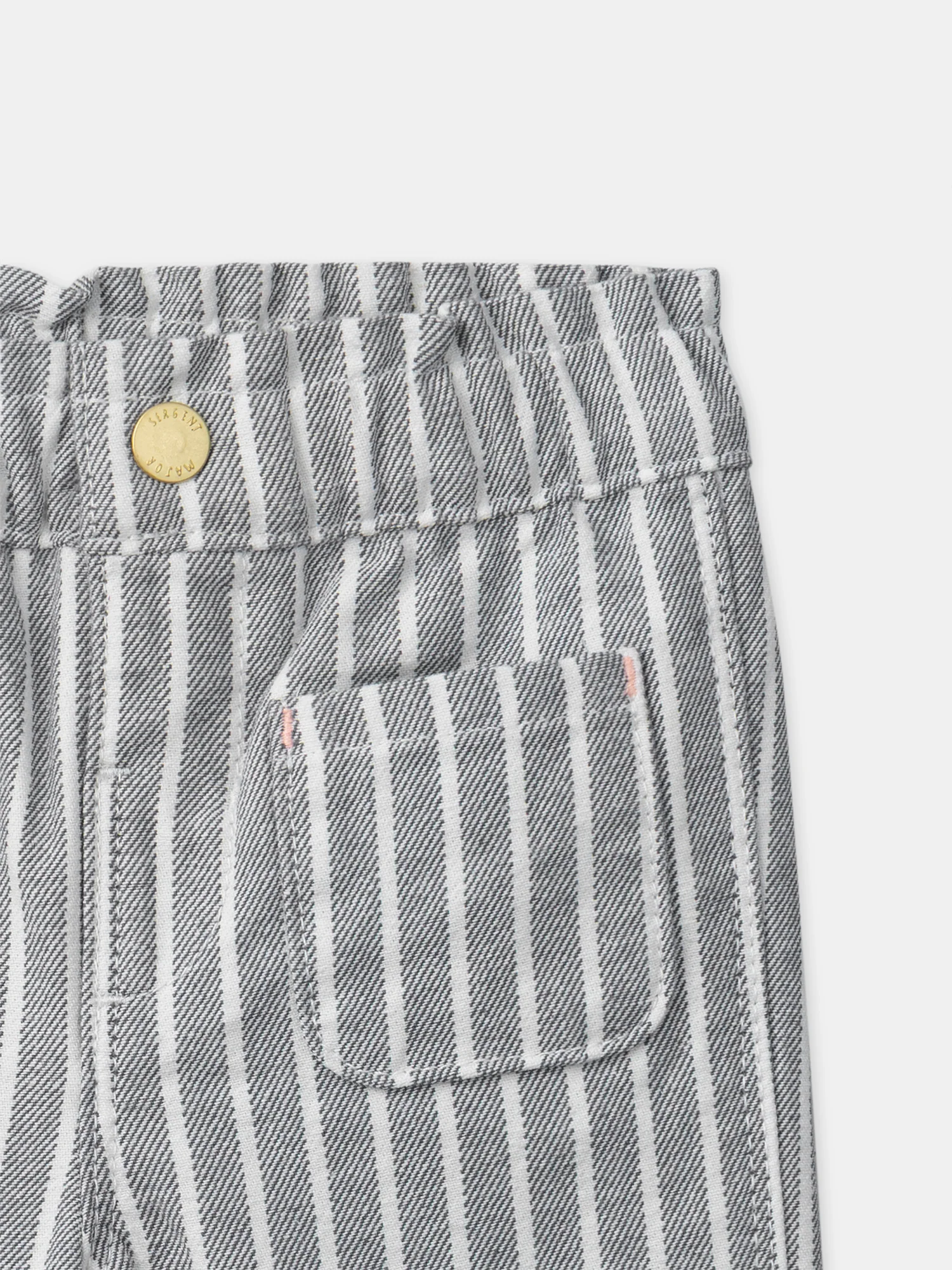 Pour les petites filles élégantes au quotidien. Son tissu rayé assure une belle tenue. Les broderies fleurs fluo ajoutent une touche moderne.