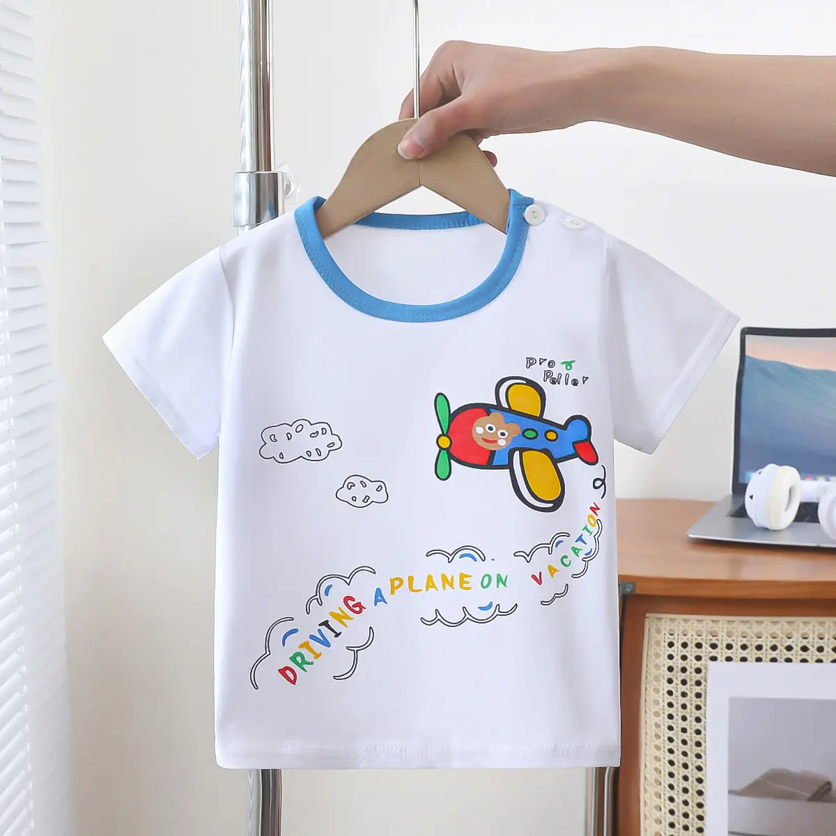 Fabriqués en 100 % coton doux, ces T-shirts unisexes aux motifs colorés et amusants (avion, dinosaure, astronaute, véhicules) séduisent autant les enfants que les parents.